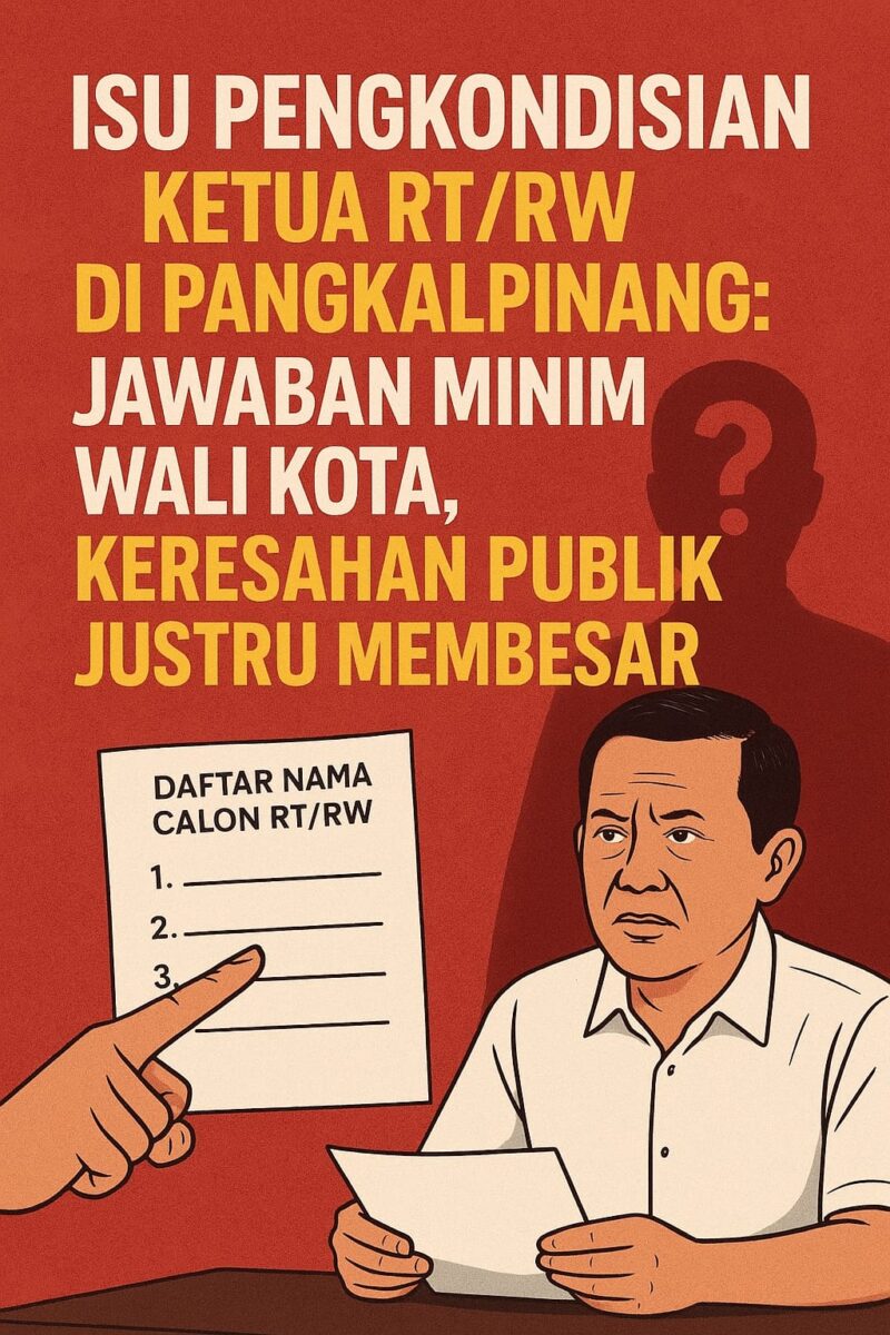 Provinsi Bangka belitung, Kota Pangkalpinang Selasa 25 November 2025 MENJELANG berakhirnya masa jabatan pengurus RT/RW di Kota Pangkalpinang, warga justru dihadapkan pada munculnya isu serius: Dugaan pengkondisian calon Ketua RT dan RW demi kepentingan politik kekuasaan Selasa 25/11/2025.