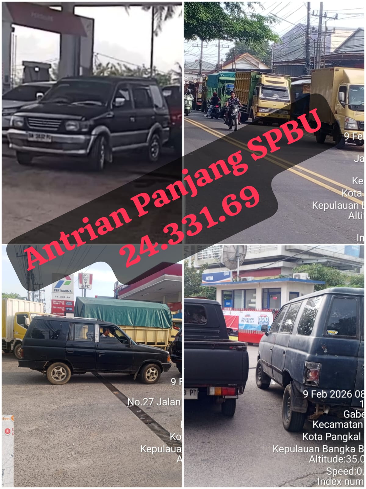 Provinsi Bangka belitung, Pangkalpinang, Selasa 10 Febuari 2026  Antrian panjang kendaraan pengangkut barang untuk mendapatkan BBM subsidi jenis solar kembali terjadi di SPBU 24.331.69 Jalan Jenderal Sudirman, Kelurahan Selindung, Kecamatan Gabek, Kota Pangkalpinang.