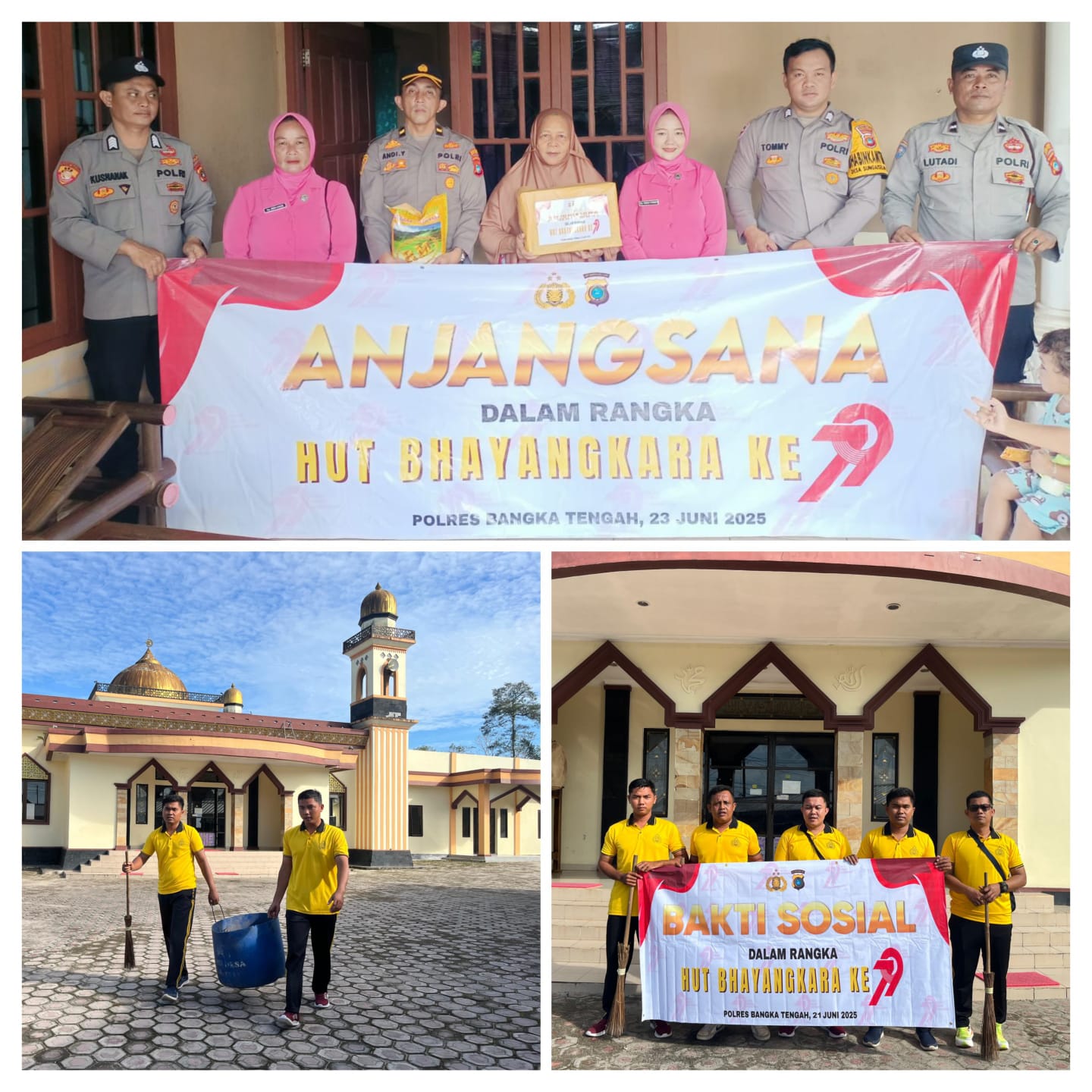 Provinsi Bangka Belitung, Bangka Tengah, Sungaiselan Sabtu 21 Juni 2025, Dalam rangka memperingati Hut Bhayangkara ke 79 tahun 2025, Polsek Sungaiselan menggelar Jumat religi (Anjangsana dan Bhakti Sosial) bersilaturahmi kepada sesepuh polri yang sudah purnawirawan maupun warakawuri serta bersih – bersih tempat ibadah di wilayah Polsek Sungaiselan di Masjid An Najah desa Selan atas dan Gereja HKBP Desa lampur dan kegiatan ini dilaksanakan serentak dengan Polres Bangka Tengah dan jajaran yang dilaksanakan pada hari jumat tanggal 20 Juni 2025 dan menjadi bukti konkret komitmen Polri terhadap toleransi dan kebersamaan lintas agama.