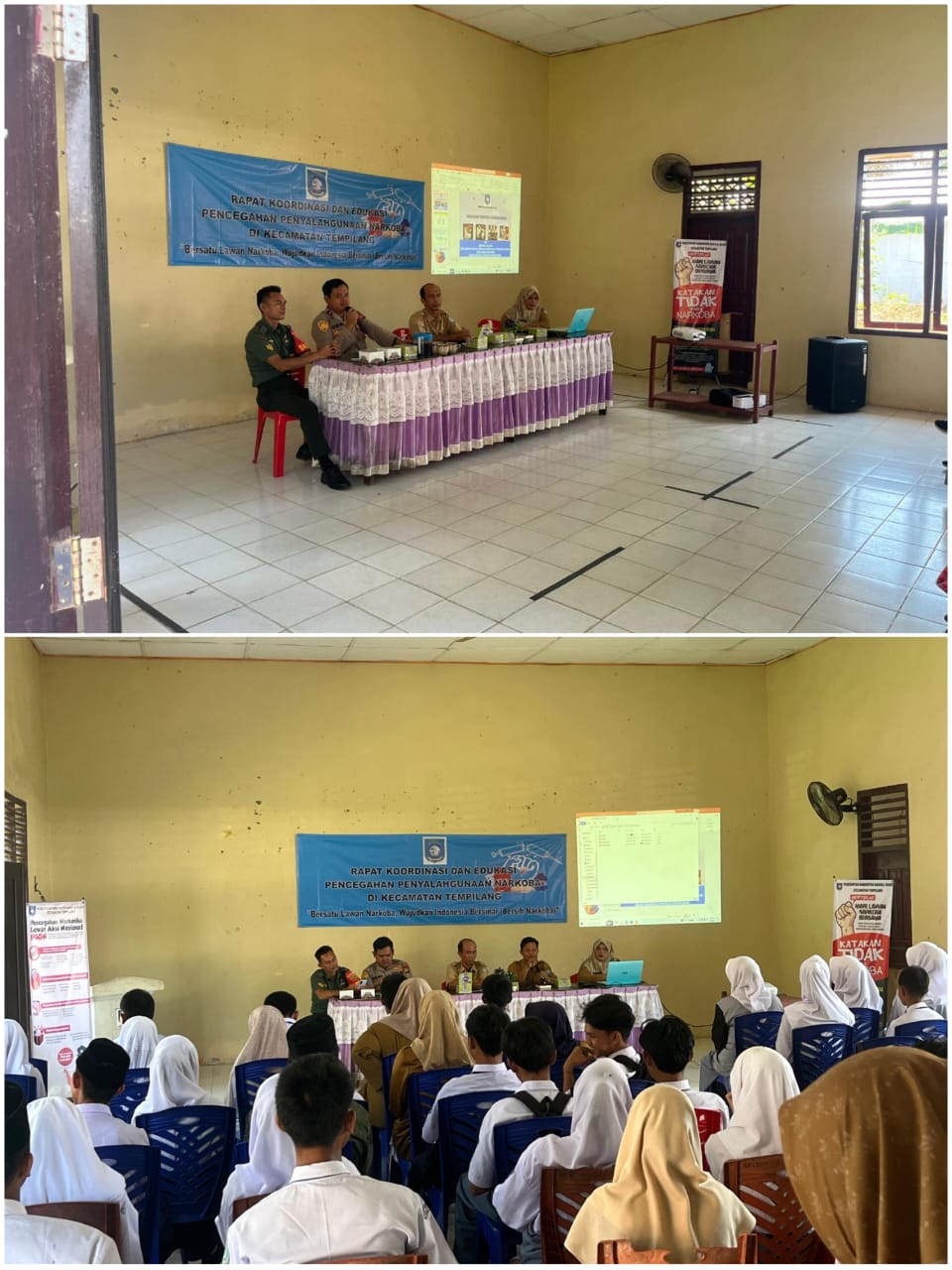 Kegiatan yang mengusung tema Bersatu Lawan Narkoba, Wujudkan Indonesia Bersinar (Bersih dari Narkoba)” ini diikuti oleh unsur Forkopimcam, Kesbangpol Kabupaten Bangka Barat, kepala sekolah, dan perwakilan pelajar dari SMA, SMK, serta MAN di wilayah Tempilang.