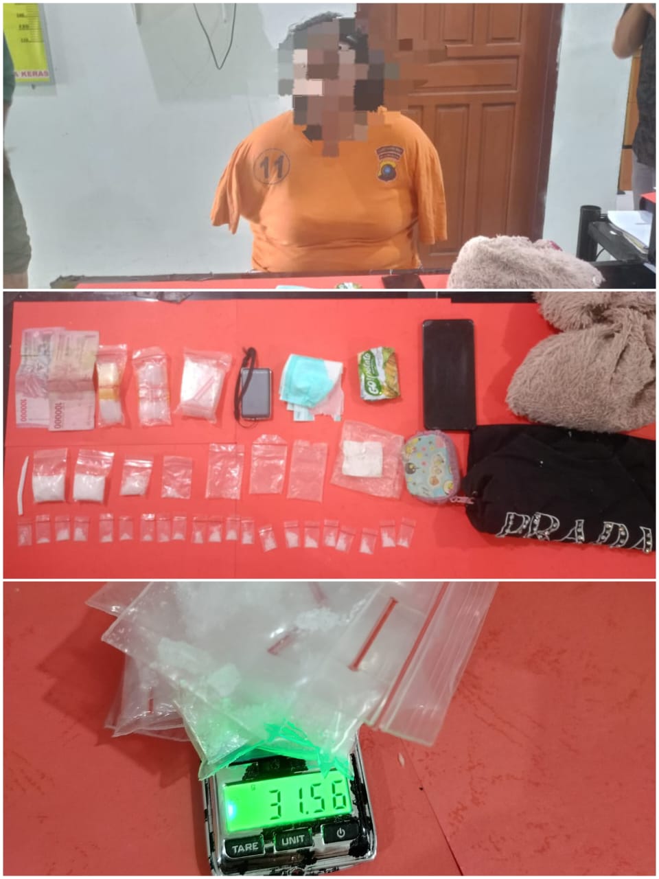 Dari tangan pelaku, petugas turut mengamankan berbagai barang bukti lain, di antaranya plastik klip kosong berbagai ukuran, satu unit handphone merk Oppo, uang tunai Rp200 ribu, serta perlengkapan yang diduga digunakan untuk transaksi. Total berat bruto sabu yang disita mencapai 31,56 gram.