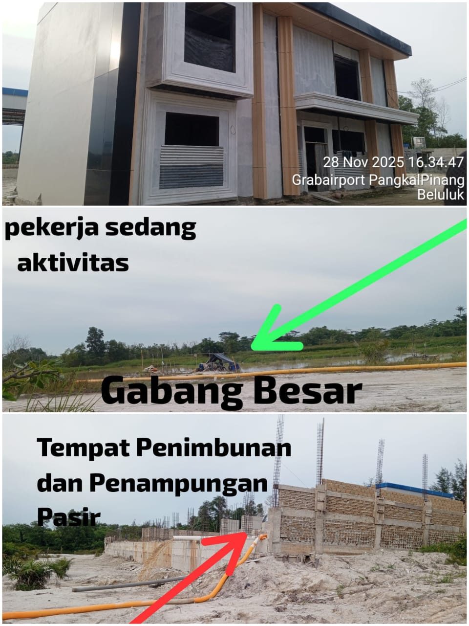 Provinsi Bangka belitung, Bangka tengah Sabtu 29 November 2025 Publik menyoroti pembangunan gedung perusahaan gas Elpiji melakukan penimbunan dengan cara menghisap pasir dikawasan dekat dengan bandara Depati Amir patut untuk dipertanyakan. Diduga aktivitas tambang pasir ilegal melakukan penambangan dengan mesin berkapasitas besar untuk menghisap pasir dari lokasi untuk penimbunan pembangunan gedung perusahaan gas elpiji.